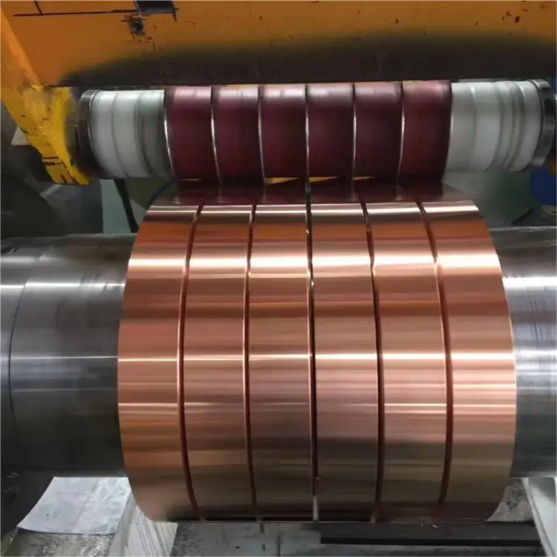 4. Processing technology: copper ingot melting → casting into billets → hot rolling (initial thickening) → cold rolling (multi-channel rolling, control the thickness of precision) → continuous annealing (elimination of processing stress, adjusting the hardness) → surface treatment (pickling to remove oxidation, polishing and brightening, passivation corrosion prevention) → slitting (according to the width of the demand for cutting) → winding (made of coils) → inspection (composition, thickness, surface quality testing).